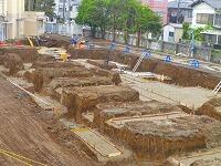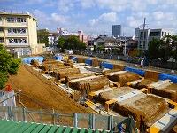 基礎工事が進み,先週は土台を作るための溝が掘られているだけでしたが,今週は既にコンクリートや鉄筋で基礎ができ始めています。