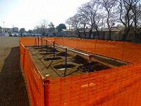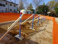 老朽化のために撤去した鉄棒に代わり,新しい「3連鉄棒」の設置工事をしています。現在土台の固定中ですので,使えるようになるまで,もう少しお待ちください。