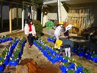 体育館脇では,低学年が鉢花の世話をしています。密を避けるために半数が外遊びをしている校庭では,距離をとって遊べるフリスビーをしている子も目立ちます。4年生は,転がしたフラフープにフリスビーを通す遊びを発明しました。子どもは遊びの天才です。