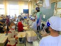 昨日の「非常事態宣言」再発令を受けて,今日から給食のとり方もかわりました。給食当番のフェイスシールド着用は前回と同様ですが,マスクを外している時間が集中しないように,配膳をした子からすぐに食べ始めることになりました。黙って食べることには引き続き取り組んでいます。