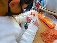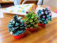 松ぼっくりに色を塗って,クリスマスツリーを作っていたことはお伝えしましたが,色を塗るだけではなかったようです。