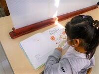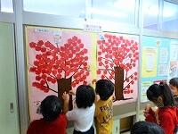 図書室前の壁に,大きな「50さつ読めたよ」の木が掲示されています。50冊読んだ子は,リンゴに名前を書いて木に貼るそうです。木には,真っ赤なリンゴが鈴なりです。読書が好きな子が増えると良いですね。