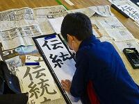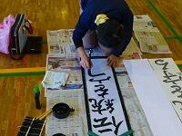 今年は例年のような「校内席書会」がなくなり,密になるため一斉の練習もできなくなりました。それでも伝統ある書き初めを学んで欲しいと,書写の時間に書き初めの練習をすることになりました。教頭が手本を用意し,ポイントをプロジェクターで映しながら確認します。一画一画,手本を良く見て筆を進める子どもたち。紙のすれる音だけが響く体育館です。
