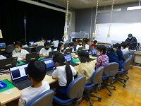 書写の「年賀状」を書く学習の発展として,PCを使ってデザインをする方法を学んでいます。元々あったデザインを自分の好きなように変更して,オリジナルの年賀状にしていきます。「来年って,何年だっけ?」「Happy New Yearって,どう書くの?」友だち同士で助け合いながら,取り組んでいます。