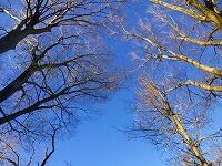 厳しい寒さが続きます。落ち葉の季節はほぼ終わり,木々の枝の間には抜けるような青空が広がっています。校庭の観察池にも氷が張りました。