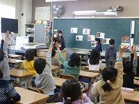 2年生の外国語活動をのぞいてみました。クリスマスにちなんだカードを当てるゲームや,小さなカードを友達と交換するゲームをしながら,英語に親しんでいます。子どもたちの意欲あふれる姿に,ALTも「とても良い子どもたち!」と褒めてくださいました。子どもたちの発音も大変良くて,感心しました。