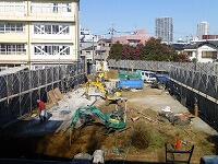第3校舎への旧通路を撤去する工事がほぼ完了しました。先週は左の写真のような状況で,土台のコンクリートを取り除いていましたが,今日は中央の写真のように何もなくなっています。いよいよ校舎の建設が始まるようです。現在,一部仮の通路でつながっている第3校舎への新通路も,完成に向けて土台の工事が始まりました。