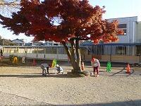 朝から落ち葉を拾っている2年生がたくさんいます。