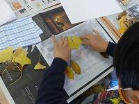 拾った落ち葉を半紙の上に並べて,レイアウトを決めていきます。
