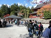 予定より早く,輪王寺に到着しました。天気が心配でしたが,抜けるような青空です。バスガイドの方によれば,11月5日には雪が降っていたとのこと。この日は上着がいらないくらい,暖かでした。紅葉を楽しみながら,東照宮へ向かいます。