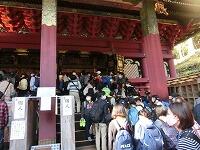 東照宮に到着! 始めに「鳴竜」の見学です。緊急事態宣言前とは比べものになりませんが,それでもかなりの数の観光客で賑わっています。鳴竜の入場案内係の方によれば,「まだ時間が早いのでそれほどでもないが,昼頃には100m以上の列になる。」とのことでした。