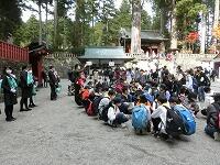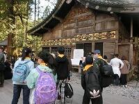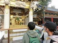 東照宮の見学は,グループに分かれて行いました。「三猿」や「陽明門」を見るだけでなく,特徴や感想なども記録していました。