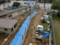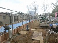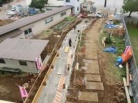 土台を作っているところまではご報告していた「第3校舎への通路」ですが,支柱も設置され,だんだんと全体の形が分かるようになってきました。今月中旬の完成を目指して,作業は順調に進んでいます。