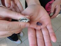 「石灰岩」です。探究心がなければ,これも普通の石として見逃してしまいそうです。この子達がこれからどんな大人になっていくのか,楽しみでしかたがありません。無限の可能性を秘めた子どもたちを,心から応援します。