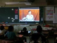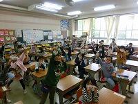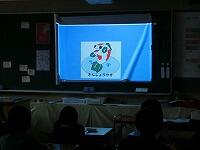 通知票を渡す前に,校長先生から全校児童へのメッセージが動画で配信されました。「全員の通知票に目をとおしましたが,みんなが頑張っていることがよく分かりました。お家に持ち帰った後,家の人と良く読んで,これからの学校生活の新しい目標を定め,学校生活を充実させて欲しい。」とのお話しがありました。その後,学校公式キャラクターの「さんしょうウオ」が画面に登場!