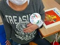 頑張ったみんなへのプレゼントとして,「さんしょうウオ缶バッジ」をもらいました。みんなとっても嬉しそうでしたよ。