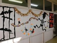 季節感たっぷりの掲示物もあります。外国語教室の廊下には,「ハロウィーン」の飾り付けがされていました。