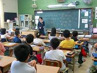 3年生は外国語教育支援員の先生と担任で,「数の数え方」の学習をしていました。始めは黒板のリンゴの絵とトマトの絵を数え,次に漢字の画数を英語で数える活動をしました。