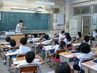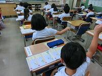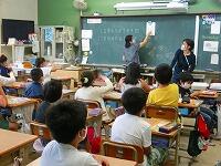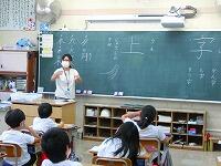 ついこの間「ひらがな」の練習をしていたと思ったら,もう「漢字」の学習が始まっていました。「上」の書き方,読み方を学習している1年生。「上」には,たくさんの読み方があるので大変です。「『かみ』とも読みますよ。」の先生の言葉に,「かみさま!」「かみなり!」「かみきりむし?」との面白い回答が続出です。この後,先生が黒板に絵を描いて「かみ」と読む時の意味を説明し,ようやく納得していました。