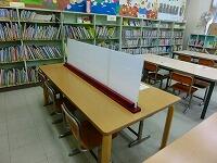 先日,施設紹介(図書室)の中で「用務員さん手作りのしきり」を紹介しましたが,このほど全てのテーブルに設置することができました。飛沫防止に加えて向かい側の様子も見えないようになっているので,図書館指導員の先生によれば「とても静かで,読書に集中しています。」とのことでした。一部だけではありますが,「囲まれ感」が良いのかもしれません。