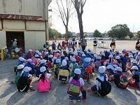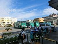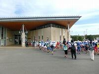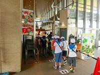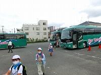校庭で簡単に出発の会を行い,近隣のスーパーマーケットに貸していただいた駐車場からバスに乗り込みました。