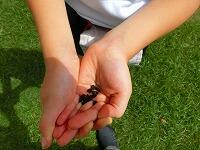 1年生が休み時間にアサガオの種を取っています。「こんなにたまったよ。」と見せてくれた袋の中には,