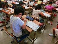 1年生は,夏休みの思い出を絵日記に書きました。今日は,友達の前で発表です。