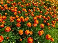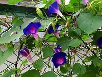 子どもルーム側のフェンスに,可愛らしいアサガオが咲いていました。マリーゴールドとヒャクニチソウは