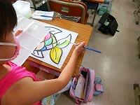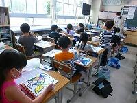 1年生の図工は賑やかになりがちですが,みんな黙って一心不乱に筆を動かしています。線からはみ出すこともなく,