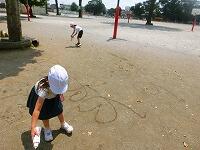 地面に絵や模様を描いたりしていました。遊んだ後は,絵と文で振り返りもしましたよ。