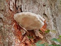 お分かりいただけるでしょうか。ケヤキは幹の半ばに,桜は根元にキノコが生えています。樹木医によれば,木材を栄養として育つ「木材腐朽菌」の一種だそうです。