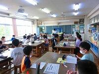 前回は担任が引率して,クラス全員で探検(見学)をしましたが,今日は2人組で探検です。もう一度見てみたい教室や,行ったことのない所を選んで出発です。「1年〇組の〇〇です。入っても良いですか?」教室に入る前には,きちんと許可をとっています。