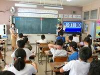 今日の外国語は,先生の英語の自己紹介を聞き取って,クイズに答える学習をしました。「先生の名前は?」「先生の好きなものに○,嫌いなものに×を書きましょう。」「登山は好きでしょうか?」