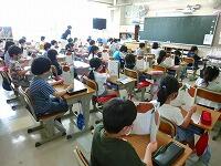 昨日までは分散で,半分ずつの登校でしたが,今日から通常の日課が始まりました。倍になったお友達に驚いて,教室に入るのをためらっている様子も見られましたが,しばらくすれば慣れると思います。全員そろった教室では,国語の音読の学習をしています。大きな声ではっきりと読むことができていますね。