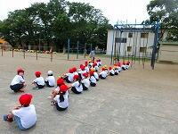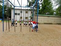 校庭では,体育の学習です。今日は,遊具を使った運動や歌に合わせてジャンプをする活動をしていました。無理せず楽しく体力づくりをしています。