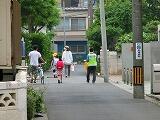 三小は柏市の中心部にあり,主要な道路に囲まれています。そのため,周辺は交通量も多く,登下校の安全確保はとても大切です。そんな三小の子ども達を守るため,毎朝横断歩道や交差点で「見守り」をしてくださる方々がいます。