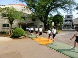 今日から発育測定が始まりました。できるだけ換気を良くし,密閉空間を避けるため体育館で実施しています。実施前後の消毒も,しっかりしていますよ。