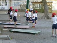 持久走と縄跳びをしています。持久走は,昨年までは「持久走大会」に向けて練習をしていましたが,今年は各学年で自分の記録更新を目指して取り組んでいます。短縄跳びも,低学年に大人気。休み時間にも,縄跳び台の前にはたくさんの子どもたちが並んでいます。