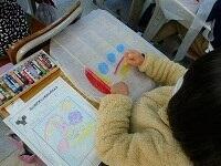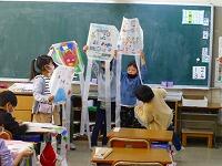 生活科では,「むかしのあそび」をしています。1組では,オリジナルの「凧(たこ)」を制作中です。デザイン画を見ながら,クレヨンで絵を描いています。