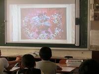 朝の会が終わって動画が始まると,子どもたちは食い入るように画面に集中していました。今日のプログラムは,1年「ろくべえ まってろよ」2年「子そだてゆうれい」3年「むれ せんとてん」4年「セロひきのゴーシュ(前編)」5年「宇宙人はだれだ!? 見破られたうそ」6年「としょかんどろぼう」なかよし・くるみ「いもころがし No,David!」です。