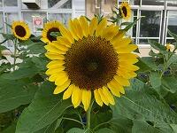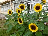 職員室前の花壇では,「ひまわり」が咲き誇っています。一般に6月~9月が開花期だそうですので,咲いていてもギリギリ不自然ではないのですが,それにしても最盛期の咲き誇り方です。