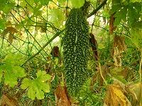 ゴーヤも元気よく花をつけています。すっかり熟してはじけた実もありますが,食べ頃の立派な実もなっています。