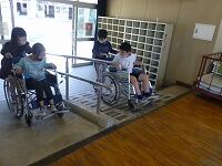 先日お伝えしたとおり,3年生は「福祉」をテーマに学習を進めています。前回は点字の取り組みでしたが,今日は「車椅子」「高齢者」「視覚障害」について体験をしました。「車椅子」では,2人1組になって車椅子を使う時や介助する時に気をつけなければならないことを学びました。「高齢者」では,手足に重りを付けたりイヤーマフやゴーグルを装着したりして,手足が思うように動かせない状態や,音が聞こえづらく視野が狭くなった状態を体験しました。「視覚障害」は,目を覆い,白杖を使って歩く体験や安全に誘導する体験をしました。始めは面白がっていた児童も,それぞれの体験をとおして,相手を思いやる気持ちや自由に体が動かせる喜びを感じたようでした。