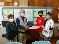 以前,新田原地域ふるさと協議会の皆様から手作りのマスクをいただいたことをお伝えしましたが,児童から「お礼をしたい。」との声があがり,感謝の寄せ書きを作りました。代表の方にお越しいただき,児童代表からお渡しすることができました。1日も早く新型コロナウイルス感染症が終息して,地域の方々と交流活動ができるようになって欲しいです。