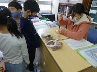 1年生は,公園探検で拾い集めた木の実を使って,おもちゃを作っています。