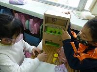 中には,どんぐりの自動販売機やガチャガチャを作っている子もいて,目の付け所に感心します。糸電話も楽しそうですね。