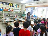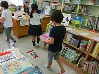 始めに学校図書館指導員さんから,新刊本の紹介と本の返し方,借り方のお話を聞きました。「返します。」「ありがとうございました。」みんなきちんと挨拶ができていますね。