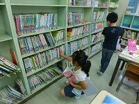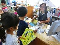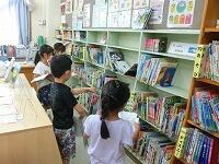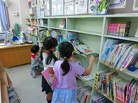 地図を確かめた後は,借りたい本を2冊選びました。お化けや怪談の本が人気のようです。雨で思うように外遊びができない日には,読書を楽しむのも良いですね。