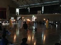 「キャンプだほい!」のクライマックスは,学校へ戻ってからのキャンドルサービスです。真っ暗にした体育館で,火の神からいただいたキャンドルの炎が幻想的に輝いています。最後はキャンドルを囲んでのダンスです。みんな汗びっしょりになりながら,楽しい時間をすごしました。