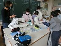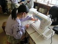 5年生は,家庭科でミシンを使った作品づくりをしています。今作っているのは「エプロン」です。丁寧に待ち針で仮止めをして,慎重に縫っていきます。今回は,保護者の方にもお手伝いいただきました。手作りエプロン,愛着もひとしおです。